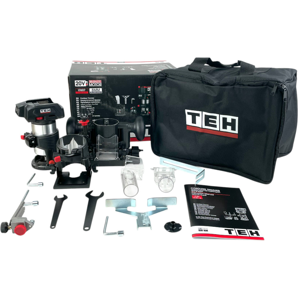 Аккумуляторный кромочный фрезер TEH LT607 предназначен для фрезерования пазов и обработки кромок поверхностей различных материалов, таких как дерево, алюминий, пластик. Инструмент имеет бесщеточный двигатель, плавный пуск, регулировку частоты вращения и электронный контроль частоты вращения под нагрузкой. Для работы можно использовать цангу 6 или 8 мм.