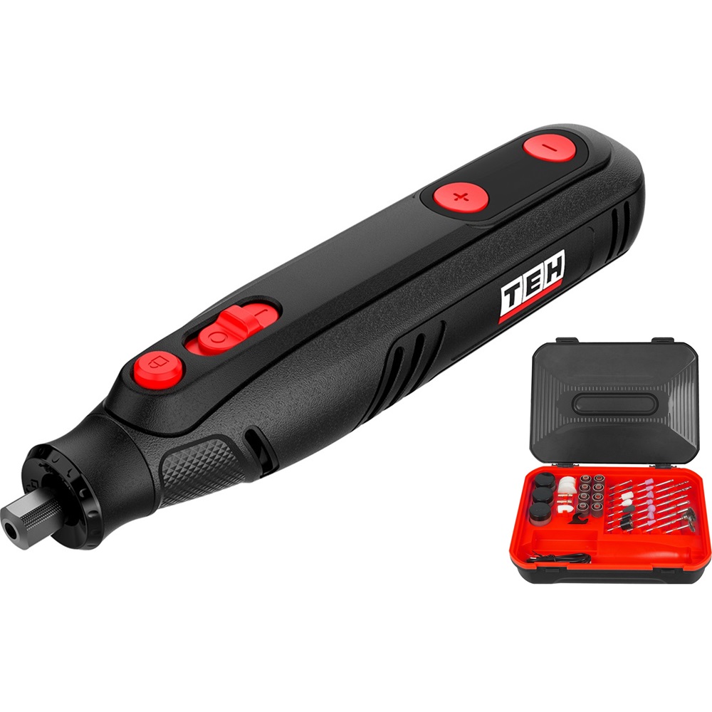 Аккумуляторный гравер ТЕН TG8112 предназначена для выполнения мелких операций: сухой резки, шлифования, полирования, сверления, фрезерования и гравирования поверхностей различных материалов (дерево, сталь, камень, плитка и т.д.) при установке соответствующих насадок.