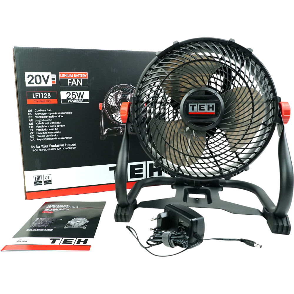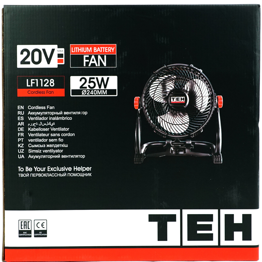 Аккумуляторный вентилятор TEH LF1128 предназначен для создания воздушного потока и охлаждения воздуха на строительной площадке, в мастерской, в гараже и быту.