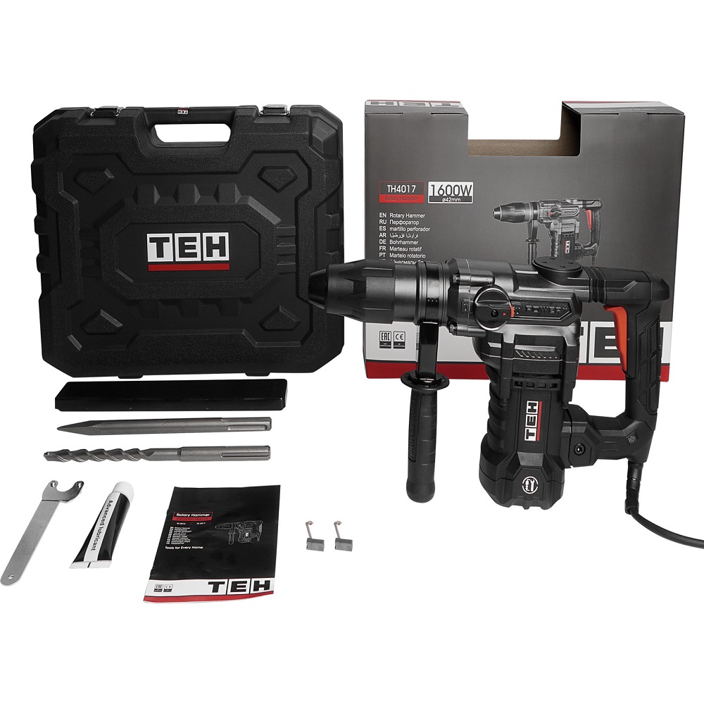 Перфоратор TEH TH4017 SDS-max предназначен для бурения отверстий, штробления пазов, разрушения твердых материалов, таких как кирпич, бетон, природный и искусственный камень и т.п. В качестве рабочих насадок в перфораторе могут использоваться бур, пика, зубило.