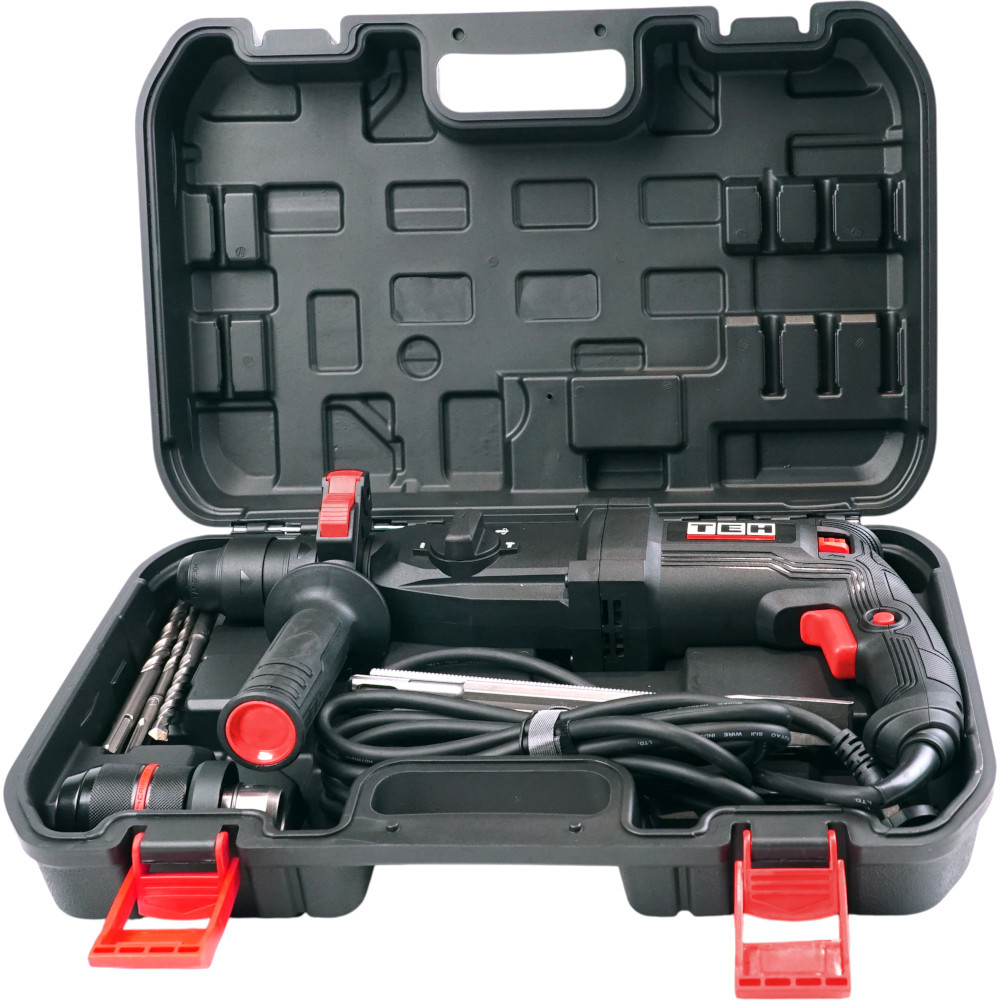 - Два патрона в комплекте - SDS Plus и быстрозажимной патрон для цилиндрических сверл.