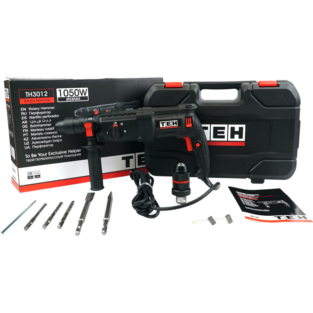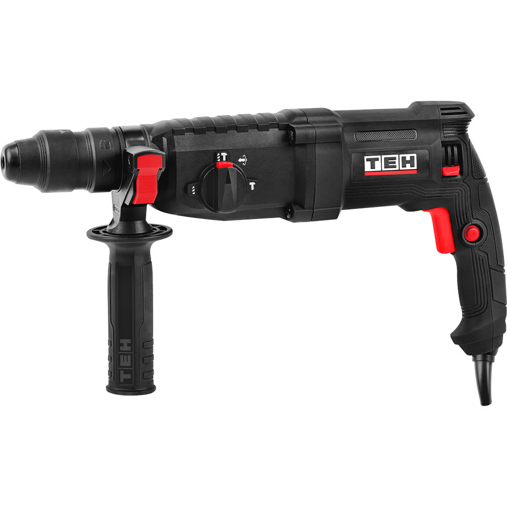 Перфоратор TEH TH3012 предназначен для бурения отверстий, штробления пазов, разрушения твердых материалов, таких как кирпич, бетон, природный и искусственный камень и т.п. В качестве рабочих насадок в перфораторе могут использоваться бур, пика, зубило.