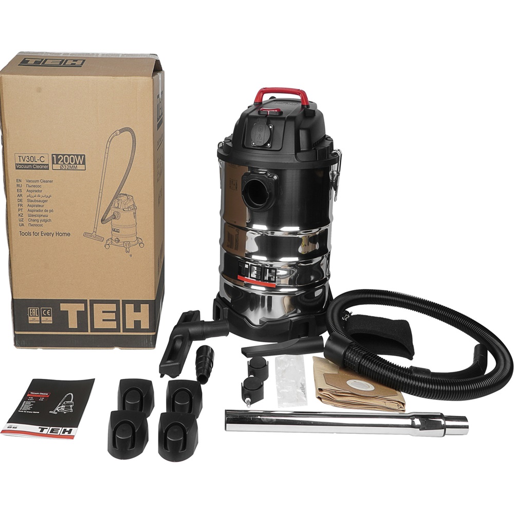 Пылесос строительный TEH TV30L-C предназначен для уборки помещений, а также для использования (синхронным включением) с электроинструментом при принудительном удалении продуктов пиления, строгания, фрезерования и т.п. Имеет возможность для
