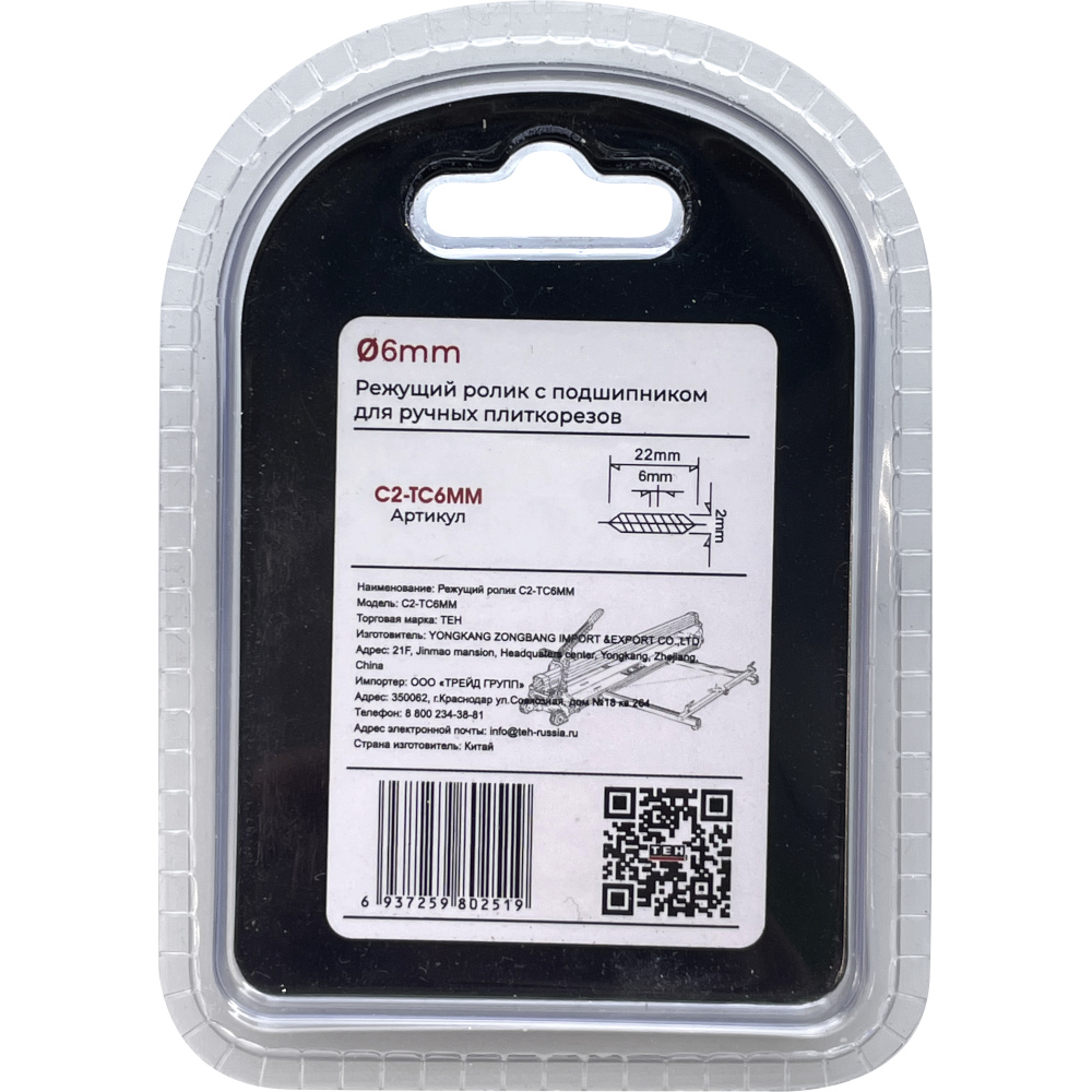 Режущий ролик C2-TC6MM с подшипником для ручного плиткореза TEH TTC1200M является сменным расходным элементом для плиткореза. Используется для обработки керамических и каменных плиток или других аналогичных материалов. Обеспечивает ровную и четкую грань среза.