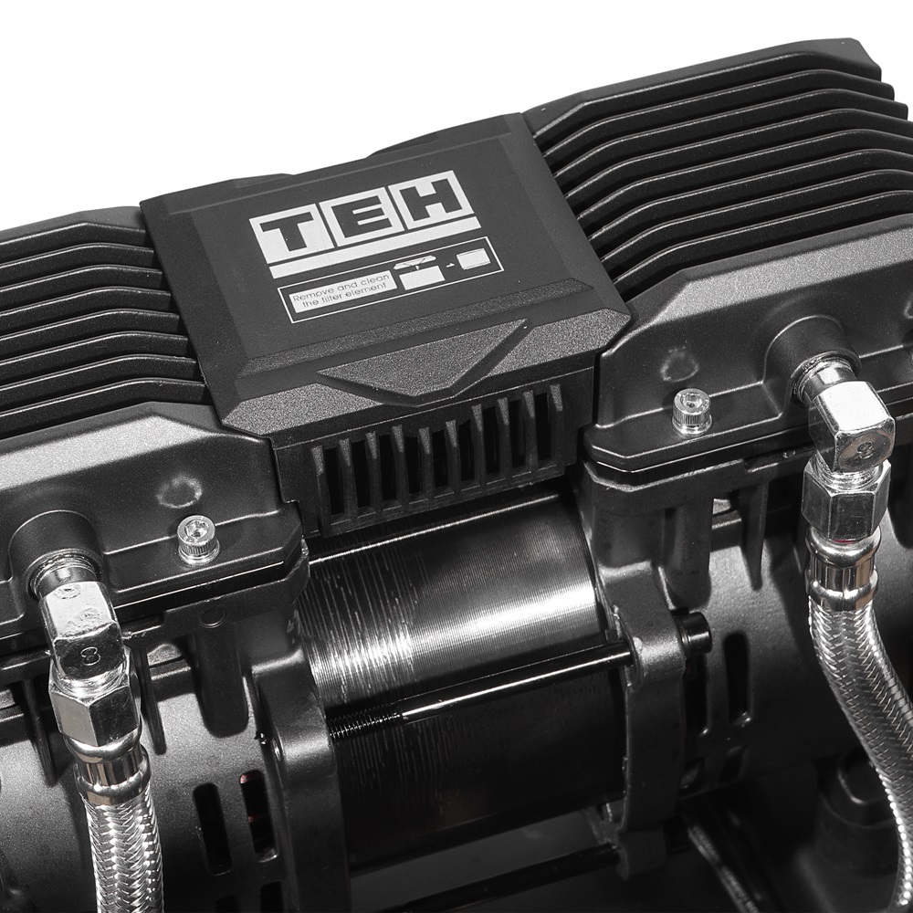 Компрессор воздушный безмасляный электрический TEH TAC50L предназначен для выработки, хранения и подачи сжатого воздуха для применения в агрегатах, использующих энергию сжатого воздуха (краскопульты, пневматические гайковерты, устройства подкачки шин и прочий пневмоинструмент). Оптимален для работы с краскопультом и для продувки электронных компонентов, т. к. в сжатом воздухе отсутствуют частицы масла. Для использования компрессора не требуется заливки масла.